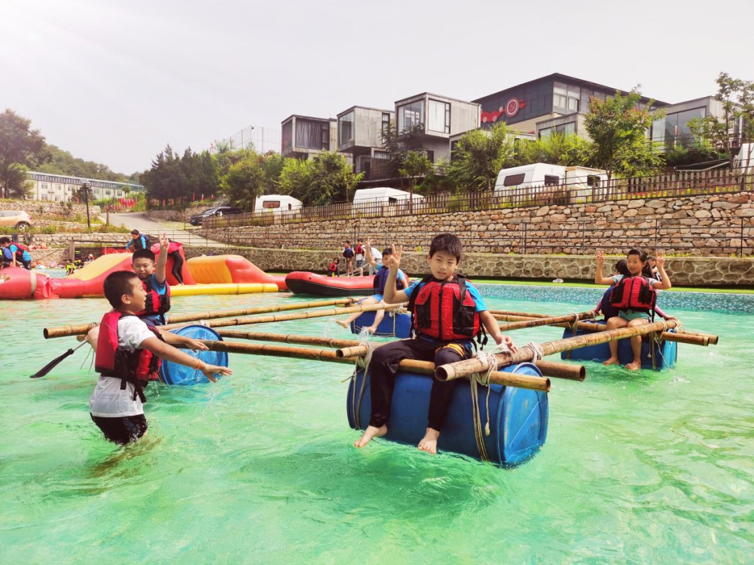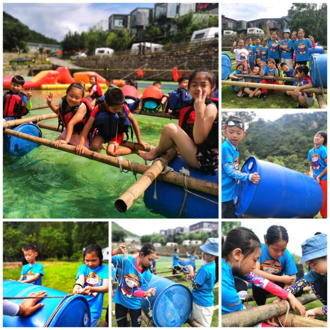 在掌握了户外结绳的技能之后,和小伙伴们一起合作,从制作到实践,自己动手扎筏,载人下水,然后坐在上面抵达指定的目的地。团队协作制作出“诺亚方舟”,同心协力,一起划起友谊的小船,驶向成功的彼岸。