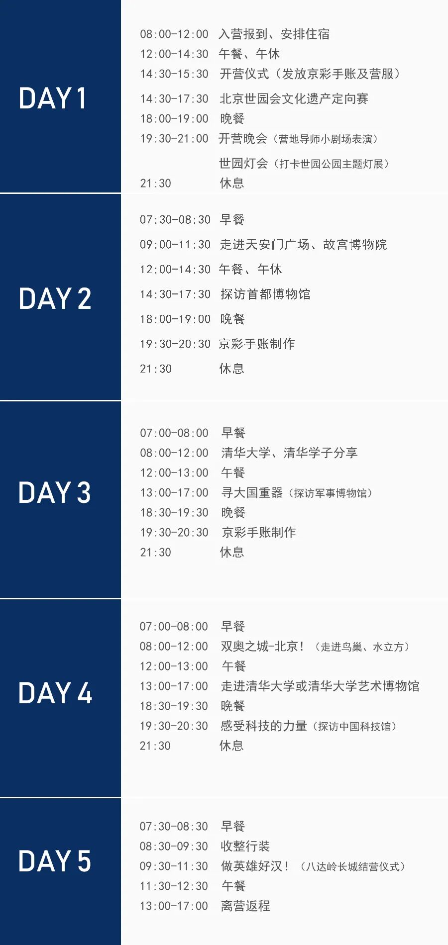 费用包含 | 活动所需的市内交通费(含市内集合点往返营地费用)、食宿费、营服、门票、场地费、活动费、导师费及活动所需其他物料费。