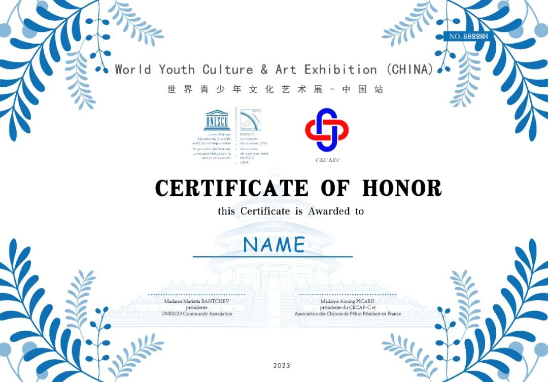参展营员将获得由联合国教科文组织直属协会(UCA)、法中文化艺术交流中心颁发的参展证书,丰富个人艺术生涯及经历,为未来艺术求学铺垫道路。