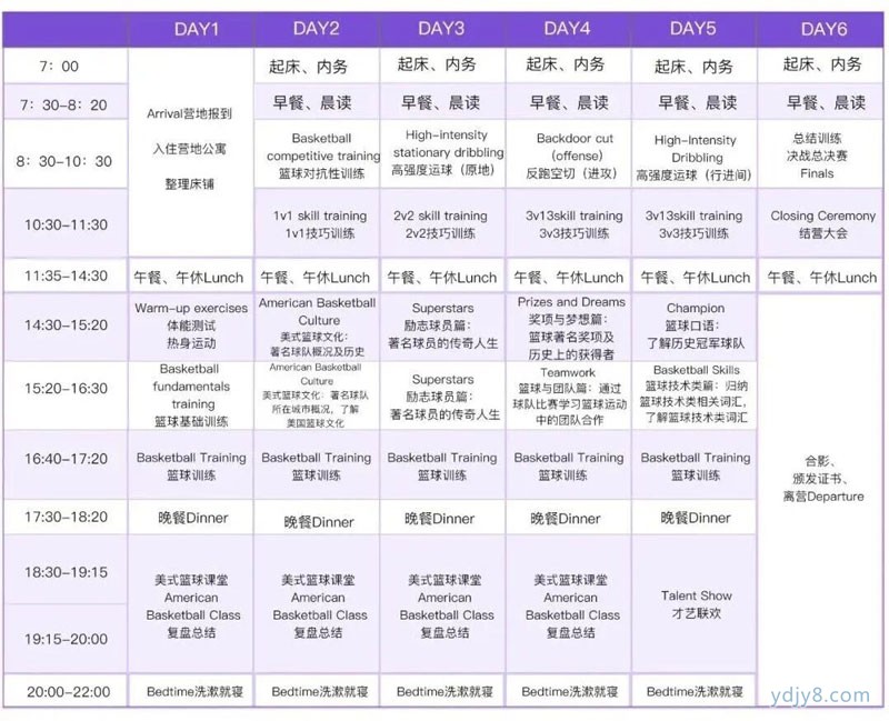 训练营内容:白天篮球激战,夜晚环游美职联