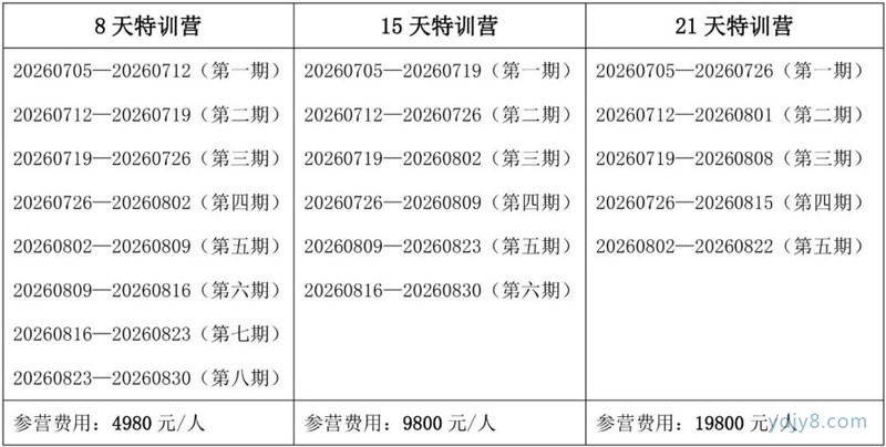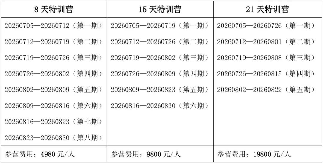 报名营期及费用(点击图片放大查看)