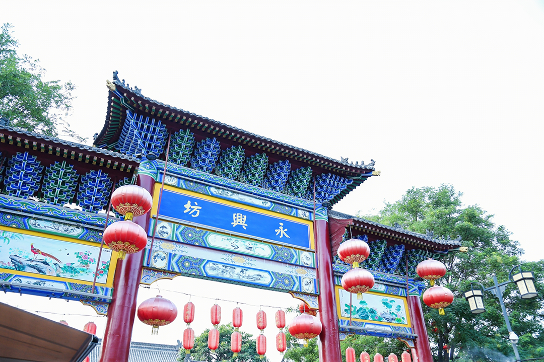 17:30-17:50 晚餐【永兴坊】原地为唐朝魏征府邸旧址,依托古城墙深厚的历史文化底蕴,在传承历史、彰显人文,进出有序、错落有致,内涵丰厚、做旧如旧,内敛外聚、动静分离等风格特色上,实现与古城墙历史景观系统的高度和谐,不仅将里坊文化的建筑作为保护重点,更将陕西非物质文化遗产美食的城市人文精神作为发掘和保护的核心。永兴坊为西安网红地,摔碗酒、毛笔酥等网红产品均是出于此地。