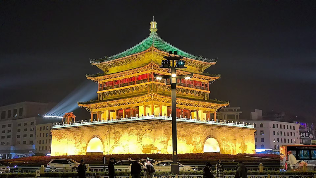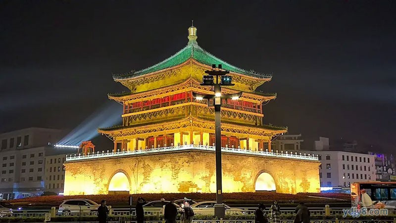 18:00-18:30 【钟鼓楼广场】位于西安市中心,是西安的标志性建筑,两座明代建筑遥相呼应,蔚为壮观,西安晚上的钟鼓楼是最美的,就像两颗蓝田宝玉镶嵌在这座城市的中央,鼓楼在古代的作用就是到点打鼓关城门,告诉城外的人该回家了…….