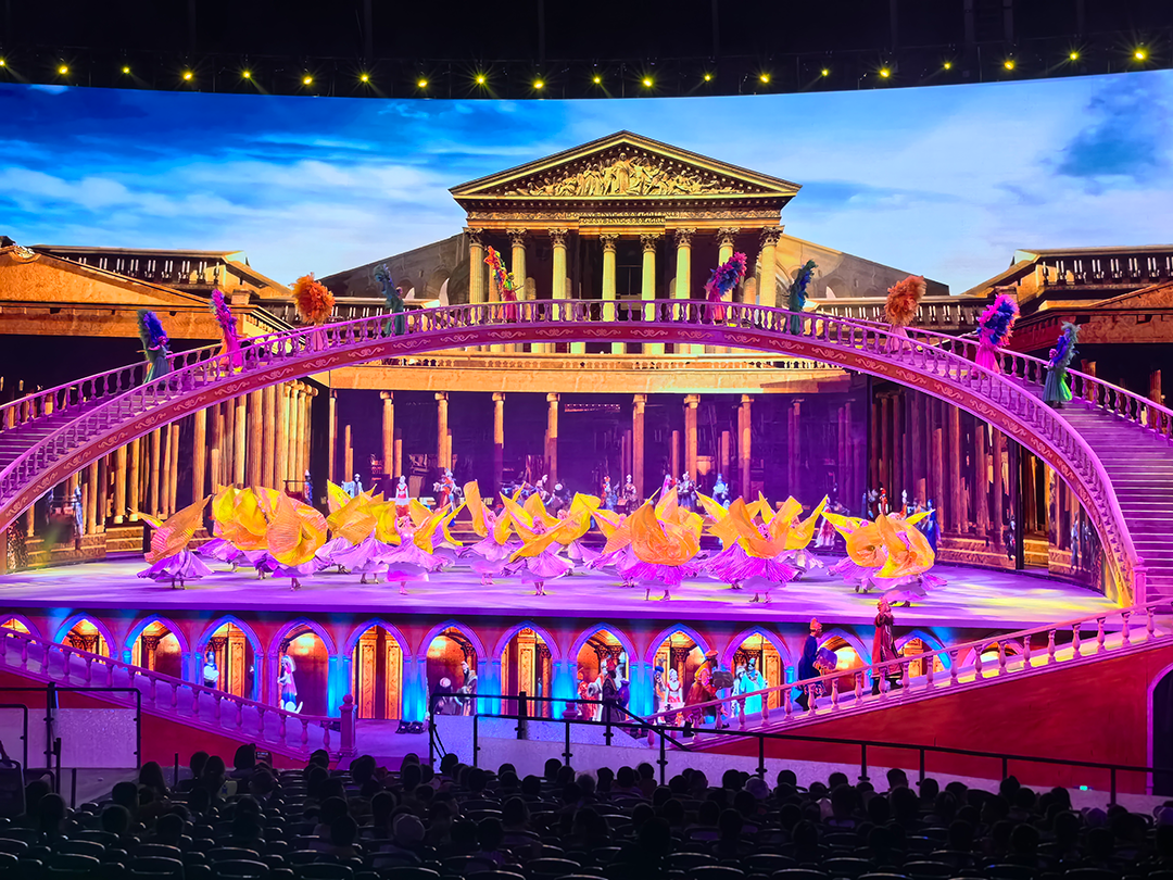 16:00-17:00 【驼铃传奇】讲述了西行驼队一路经历火山、雪崩、风沙、大漠等自然险阻以及狼群突袭,九死一生达到当时的罗马帝国,随后满载货物返程,巧遇天降圣水,在亲人的期盼中安然返回长安的征程。驼铃传奇整场实景歌舞演艺分为序幕《岁月再现》《送君千里》、《狼道遇险》、《异国风情》、《祥雨洗尘》、《迎郎归来》、《华夏盛世》七幕剧情。