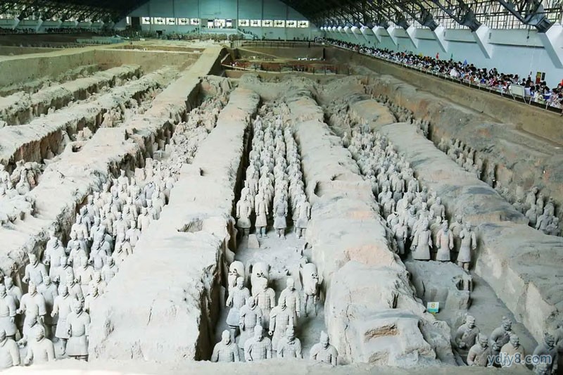 09:00-12:00 【秦始皇兵马俑】参观,1987年被联合国教科文组织批准列入《世界遗产名录》的世界第八大奇迹,兵马俑是以秦始皇陵遗址公园为依托的一座大型遗址博物院,目前有一、二、三号坑、铜车马展厅。