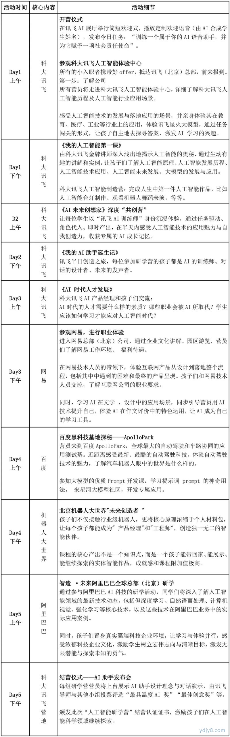 2.学习物料:项目安排表(含日程安排、知识点梳理、职业方向介绍)、参观证、笔记本、签字笔。