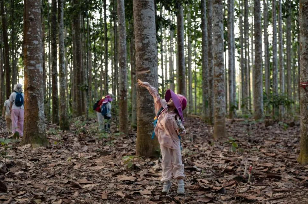 在“共生关系密室”,孩子们要完成生态谜题:榕树为榕小蜂提供育婴室,小蜂为其专属授粉;切叶蚁搬运的叶片碎屑,最终成为滋养大树的腐殖质。最烧脑的是“植物防御战”:龙脑香树分泌树脂困住害虫,箭毒木的乳汁能让箭镞见血封喉。