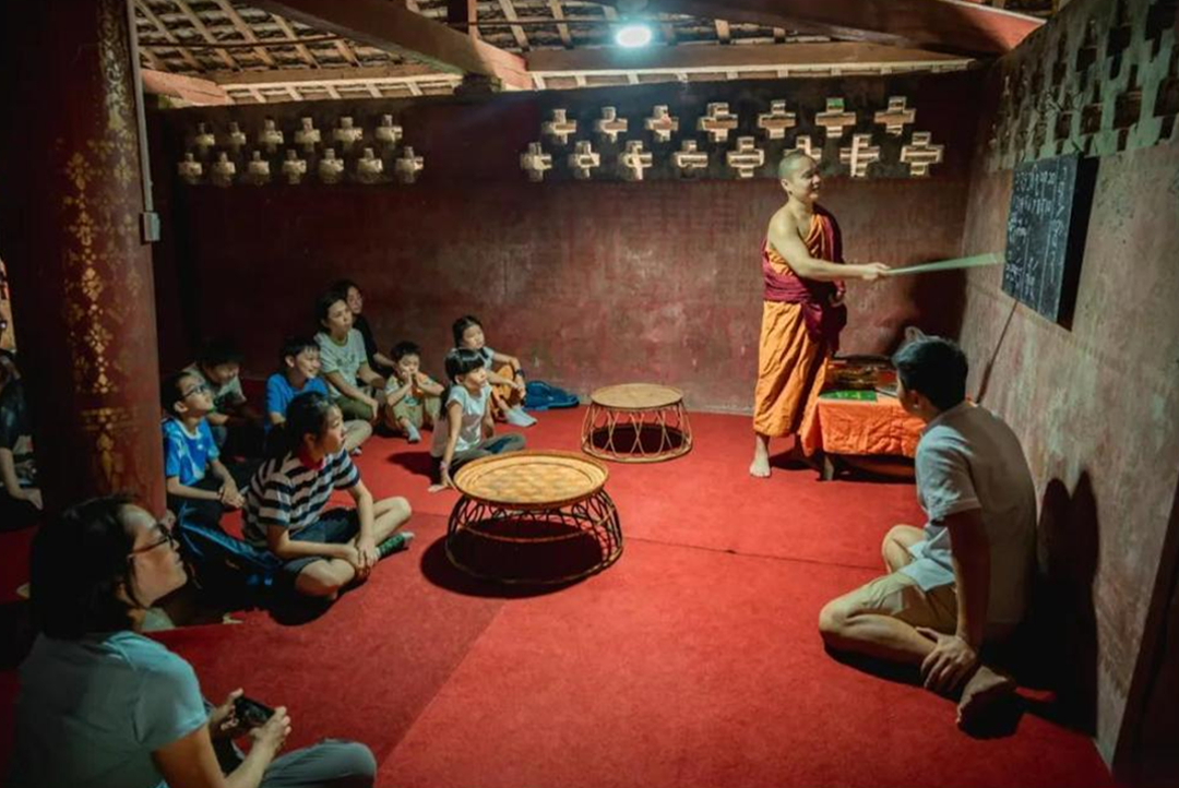 贝叶经是傣族文明的“活化石”,贝多罗树叶需经蒸煮、晾晒、压平等 12 道工序,才能成为千年不腐的书写材料。刻经的铁笔尖端镶嵌金刚石,孩子们将在贝叶上练习“圆形傣文”——这种源自巴利文的文字,字母如同舞动的精灵,数字符号形似藤蔓缠绕。大佛爷会讲述“三滴墨”的故事:第一滴墨混合蜂蜡与炭粉,象征智慧与自然的融合;第二滴加入菩提树汁,代表对生命的敬畏;第三滴融入诵经时的呼吸,让文字拥有灵魂。在寺庙的藏经阁,孩子们将触摸 800 年前的贝叶经——叶片上的经文依然清晰,边缘的金粉装饰仍闪烁着信仰的光芒。最神秘的是“雨林密码本”:古人用特定排列的贝叶记录草药配方,只有同时懂得傣文与植物学的智者才能破译。