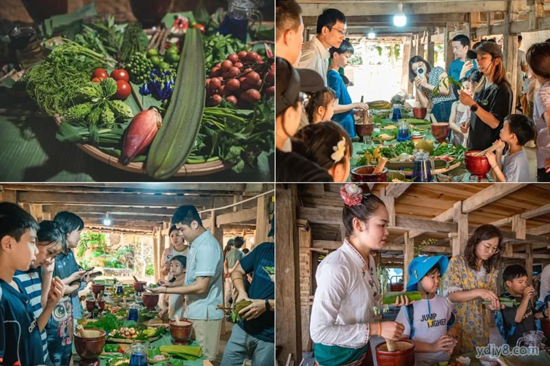 傣族美食是植物化学的狂欢:香茅草富含柠檬醛,能让味蕾穿越到东南亚;刺芫荽的癸醛成分赋予菜肴独特的青草香。孩子们将参与“香料猎人”挑战——用石臼舂制包含 13 种香料的喃咪酱,学习傣族“万物皆可舂”的美食哲学。制作豪糯嗦(芭蕉叶粽子)时,要掌握叶片折叠的黄金角度,确保蒸煮时蒸汽均匀渗透。在露天厨房,炭火是隐形的调味师:铁刀木炭燃烧时释放的远红外线,让米饼形成酥脆外壳;罗望子果壳燃烧的烟气,赋予烤鱼淡淡的果木香。最有趣的是“分子料理实验”——用神秘果片暂时屏蔽酸味感知,让柠檬尝起来像糖果,体验味觉的魔术时刻。